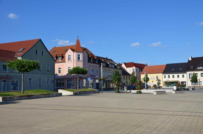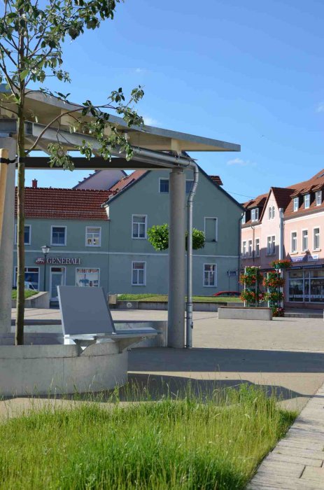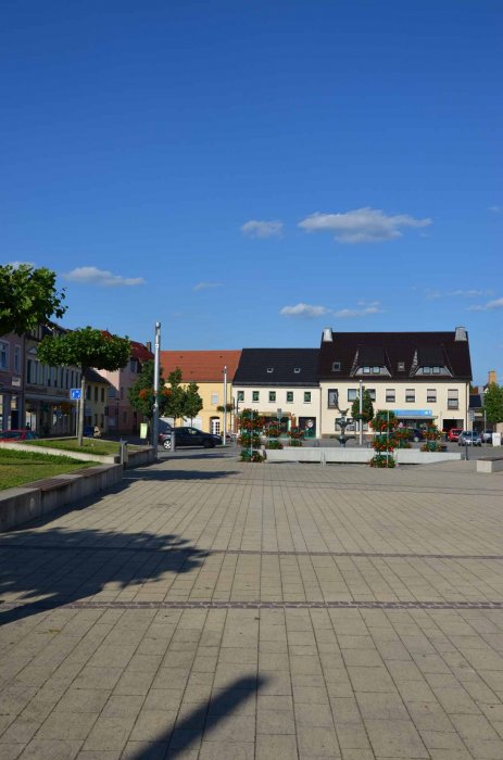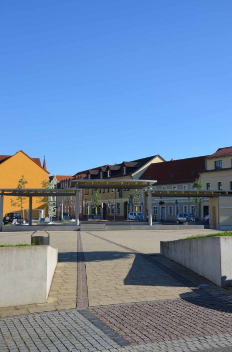 Nun ist der Marktplatz komplett. Mit dem vierten Bauabschnitt wurde das Gesamtensemble in der Innenstadt von Elsterwerda komplettiert. Eigentlich war der heutige Marktplatz früher ein bebautes Quartier und der eigentliche Platz viel kleiner. Aber in einem umfangreichen Bürgerbeteiligungsprozess wurde festgelegt, dass dieser große Raum innerhalb der Stadt erhalten bleiben soll.