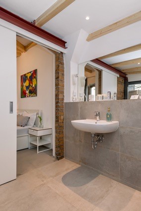Nach langen und intensiven Gesprächen mit der Denkmalpflege, der Bauaufsicht und der Feuerwehr konnte der Baukörper um knapp 3 Meter verlängert werden. Die Gestaltung des Ergänzungsbaukörpers ermöglicht es, die historische Bausubstanz sowohl in der äußeren Erscheinung als auch in den Innenräumen deutlich erkennbar zu bewahren. Bei der Sanierung der Gebäudehülle wurden bewusst die Spuren der Zeit erhalten, um den historischen Charakter zu unterstreichen.