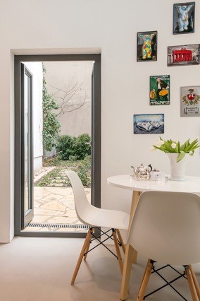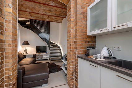 Im Rahmen der umfassenden Sanierung eines der letzten originalgetreu erhaltenen Berliner Stadthäuser in der Senefelder Straße stand die anspruchsvolle Aufgabe, die im Hof befindliche Remise zu restaurieren und in eine Ferienwohnung umzuwandeln. Mit einer Grundfläche von lediglich 3,90 m x 4,60 m in den Außenmaßen war es notwendig, ein minimalistisches Raumprogramm zu entwickeln. Dennoch sollte eine vollwertige Zweiraumwohnung entstehen.