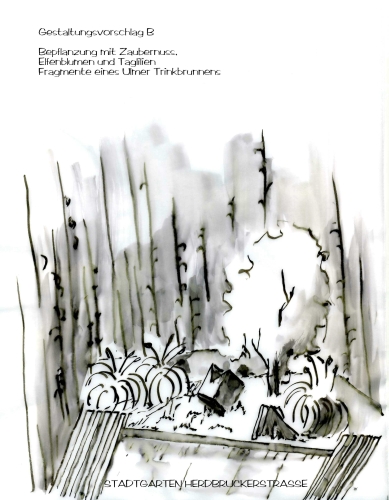 Von der Donau herkommend durchschreite ich die Herdbruckerstraße um zum Rathaus zu gelangen. Plötzlich schiebt sich ein grünes Wäldchen von rechts im mein Blickfeld, das ich hier in der Innenstadt nie erwartet hätte. Neugierig suche ich einen Eingang, nachdem ich festgestellt habe, dass die grüne Wand aus Bambus mit den Blicken nicht zu durchdringen ist. Das Bambusgrün passt wunderbar zu der lebhaften, langsam malerisch anrostenden Einfassung aus Stahlbändern und hebt die Pflanzung vom Boden ab.